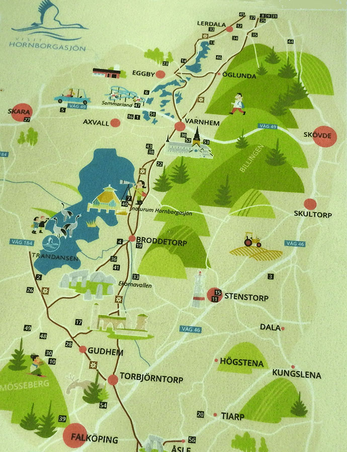 Der var afgang fra Nærum Station kl. 6.45, og efter et par nødvendige stop nåede vi frem til Naturum Naturreservat på østsiden af Hornborgasjöen ved 15-tiden. Her var der flotte udkigshuse og gangbroer ud i søen, men bortset fra lappedykkere og en hættemåge koloni ikke ret mange fugle.