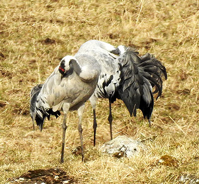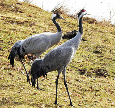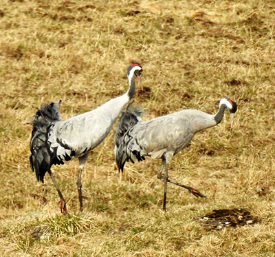 Traner danner par for livet, og når de ankommer til Hornborgasjöen, skal forholdet bekræftes, og unge fugle skal danne nye par. Det sker ved en række synkroniserede dansetrin og spring op i luften. Desværre var dansen så godt som overstået ca. en uge før, vi ankom.