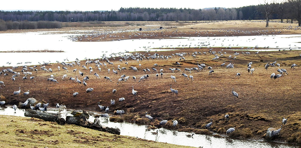 Efter Gudhem nåede vi frem til turens hovedmål kaldet Tranedansen på vestsiden af Hornborgasjöen, og her var der i det forløbne døgn ca. 11.600 traner.