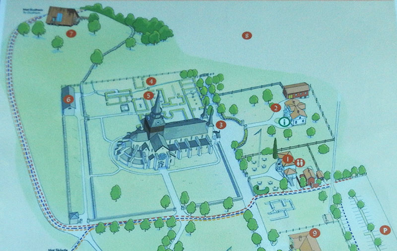 Sidst på eftermiddagen blev der aflagt besøg ved Varnhem Klosterkirke og Kata Gården, der var et landbrug i Vikingetiden med en privat kirke, der ligger på en bakketop bag Klosterkirken. Stedet er angivet i øverste venstre hjørne på kortet.